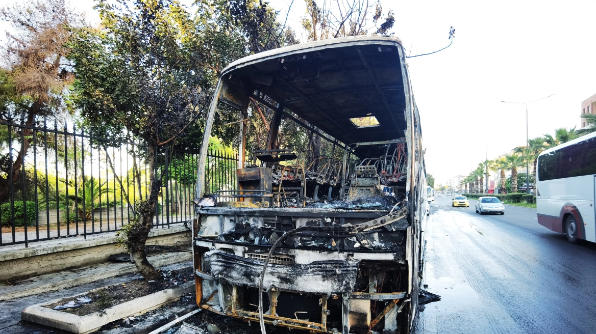 Από τις μολότοφ προκλήθηκε φωτιά σε σταθμευμένα λεωφορεία, με αποτέλεσμα δυο εξ΄ αυτών να υποστούν εκτεταμένες ζημίες και μικρότερες φθορές ένα τρίτο.