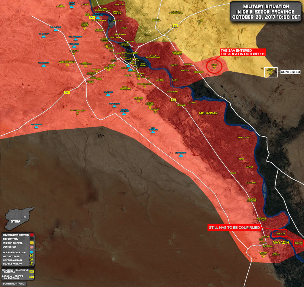 Μέχρι στιγμής, δεν είναι σαφές εάν ο Στρατός θα μπορούσε να ενισχύσει τις θέσεις του στην ανατολική όχθη κοντά στο Mayadin.