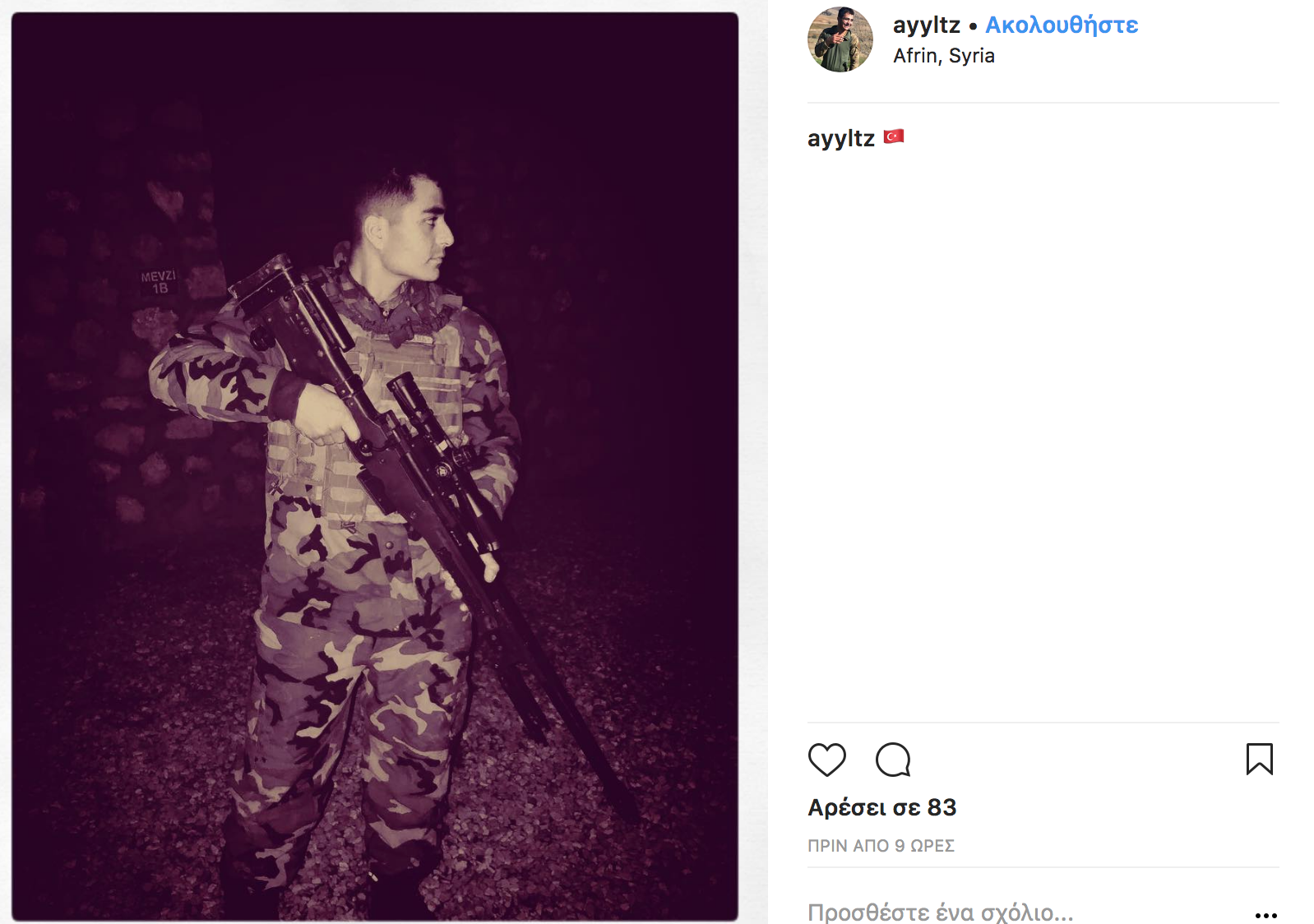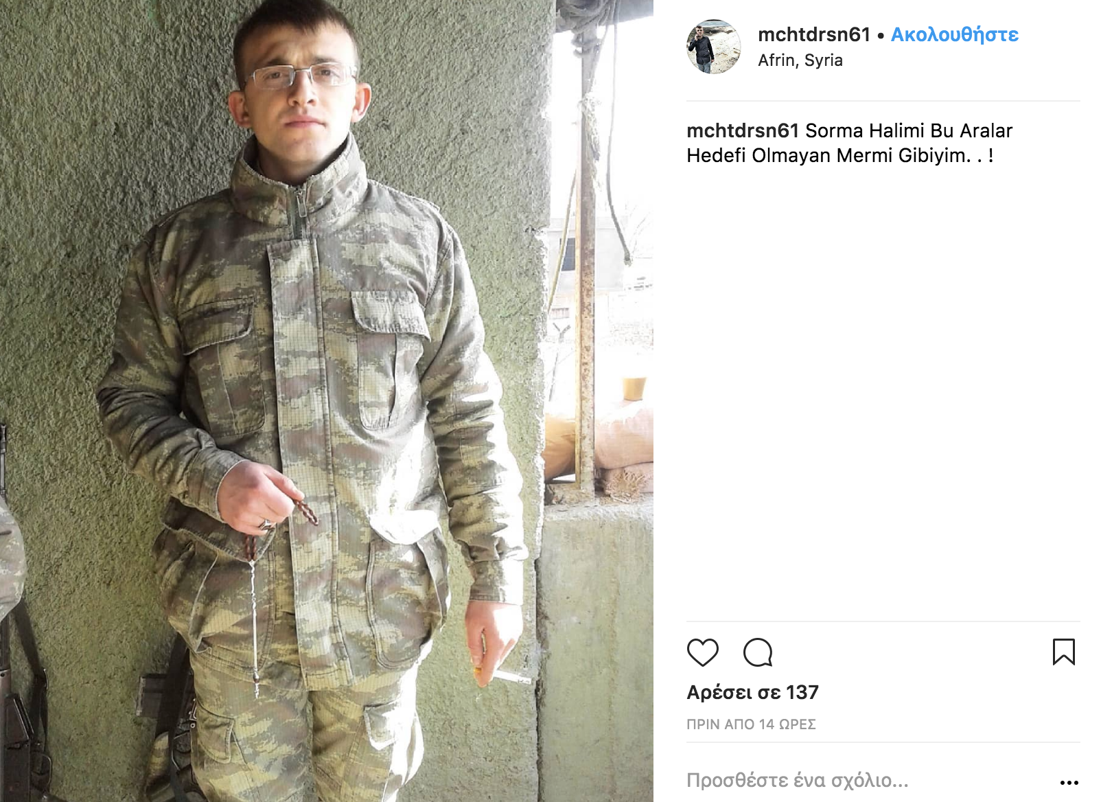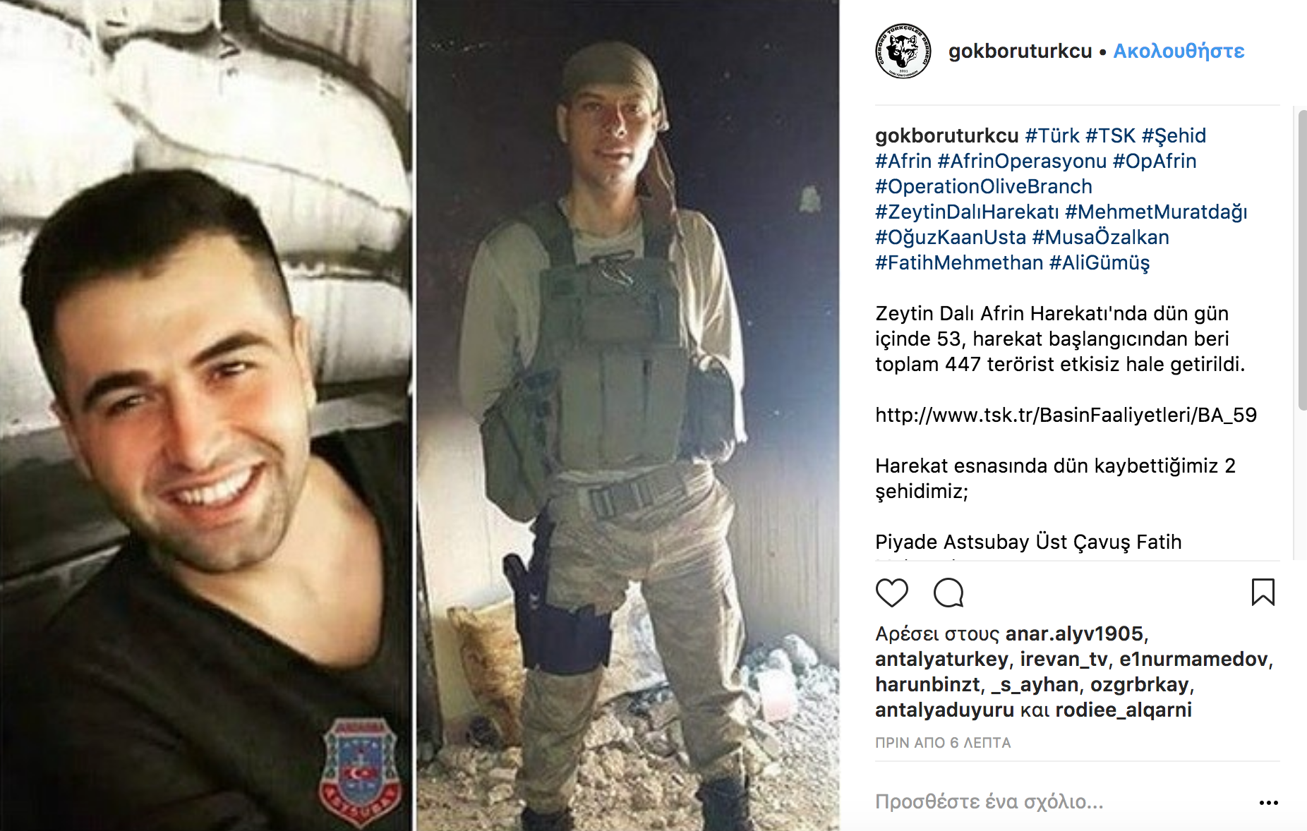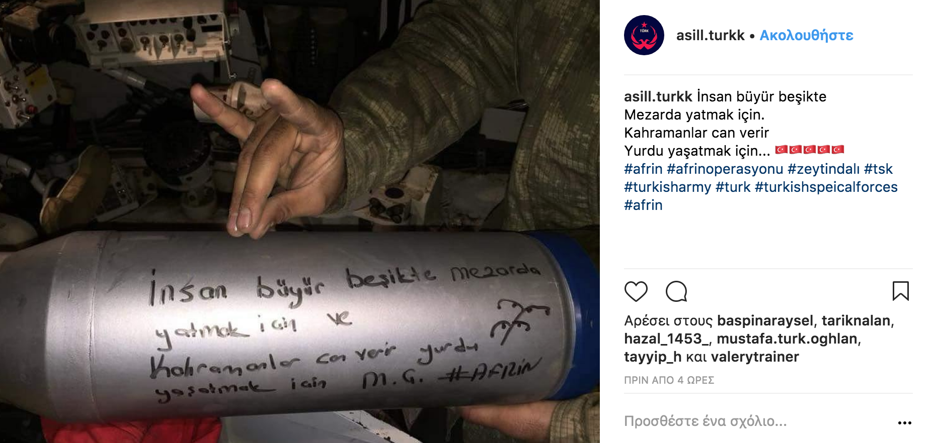 Σάλος έχει προκληθεί στο διαδίκτυο τα τελευταία 24ωρα με τις συνεχείς αναρτήσεις Τούρκων στρατιωτών στο Instagram από την Αφρίν της Συρίας κατά την διάρκεια της επιχείρησης «Κλάδος Ελαίας» με τους επιτελείς τους να «πονοκεφαλιάζουν» από αυτό το γεγονός.