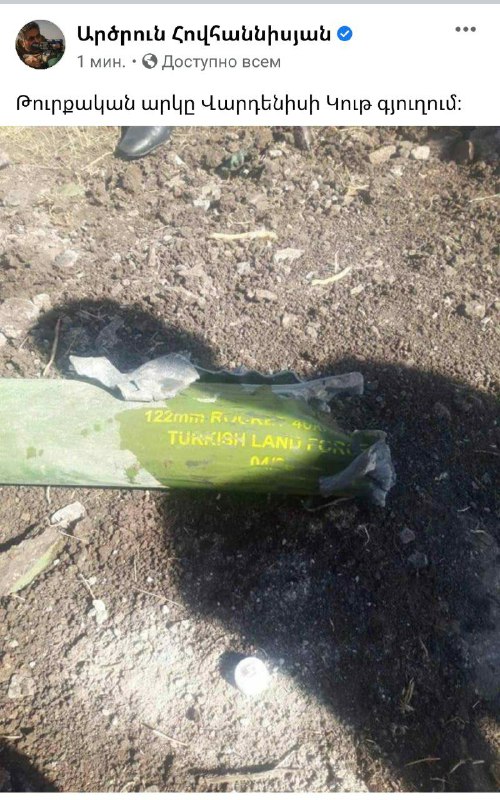 Την ίδια στιγμή οι Αρμένιοι βάζουν με στοιχεία την Τουρκία στο κάδρο των συγκρούσεων στο πλευρό των Αζέρων αναφέροντας όχι μόνο τα όπλα που έχουν αγοραστεί από την τουρκική βιομηχανία αλλά δείχνοντας και εικόνες ρουκετών τουρκικής χρήσεως.