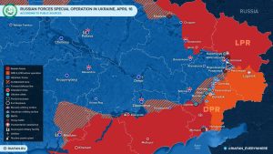 Ένας αρκετά κατατοπιστικός χάρτης της ρωσικής ειδικής στρατιωτικής επιχείρησης κυκλοφορεί σε ρωσικούς λογαριασμούς στο διαδίκτυο.