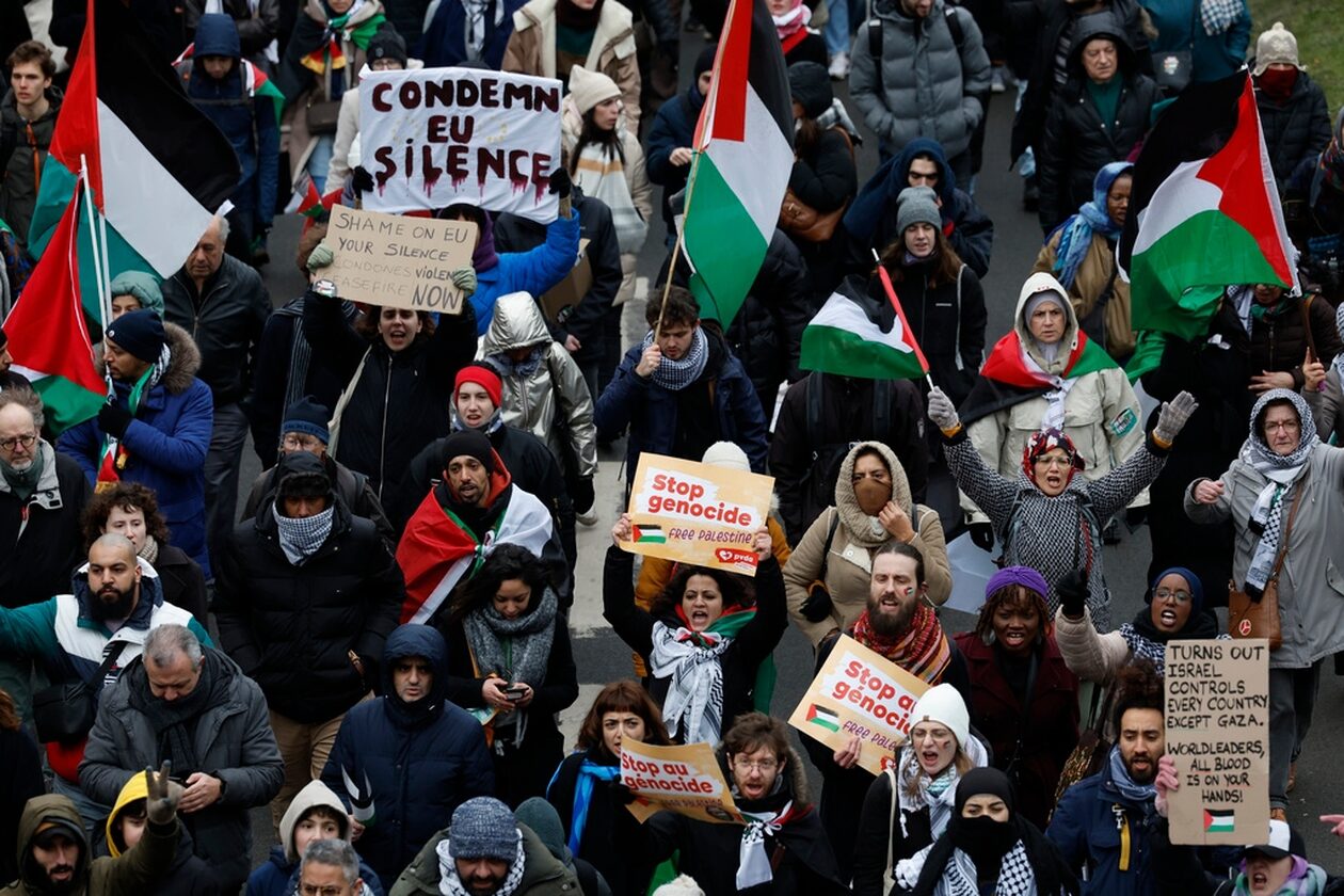 Διαδήλωση με αίτημα τον τερματισμό των εμπόλεμων συγκρούσεων στη Γάζα πραγματοποιήθηκε στις Βρυξέλλες.