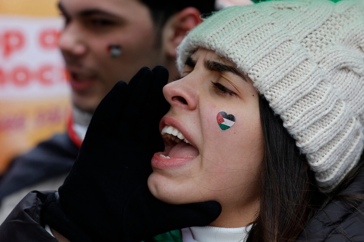 Στη σημερινή διαδήλωση, υπό ένα πανό με γραμμένη τη φράση «Δικαιοσύνη για την Παλαιστίνη», οι συγκεντρωμένοι φώναζαν συνθήματα όπως «Σταματήστε τη γενοκτονία», «Το Ισραήλ είναι τρομοκράτης» και «Απελευθερώστε τη Γάζα».