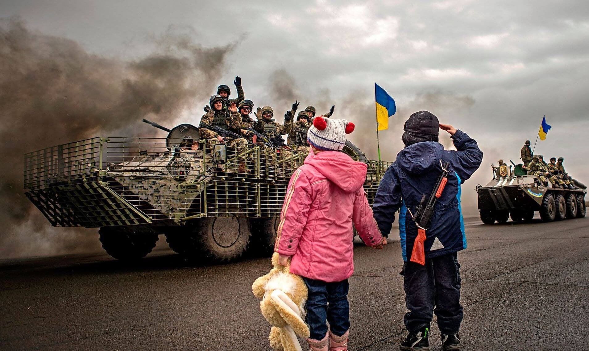 Φυσικά στη λίστα βρίσκεται η είδηση με τα παιδιά να χαιρετούν στρατιωτικά τα ουκρανικά στρατεύματα, η οποία όμως τραβήχτηκε πριν από έξι χρόνια: