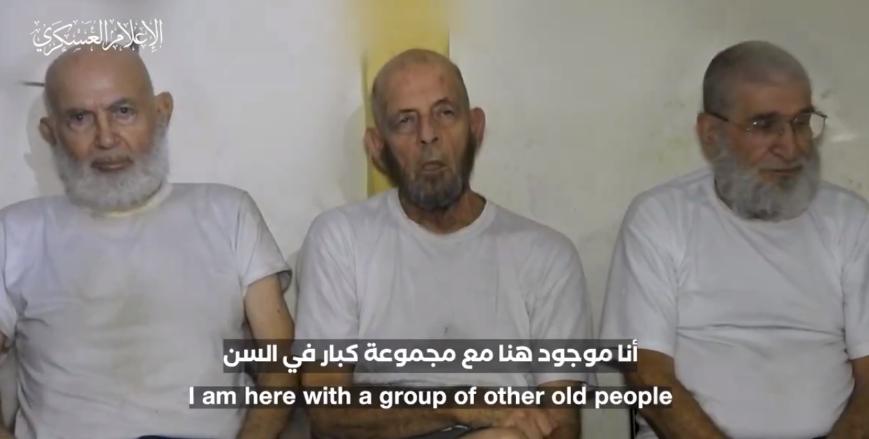 Αναρτήθηκε σήμερα στο Telegram, από την ένοπλη πτέρυγα της Χαμάς, οι Ταξιάρχες Εζεντίν αλ Κάσαμ, βίντεο όπου εμφανίζονται τρεις ηλικιωμένοι Ισραηλινοί όμηροι να παρακαλούν για την απελευθέρωσή τους.