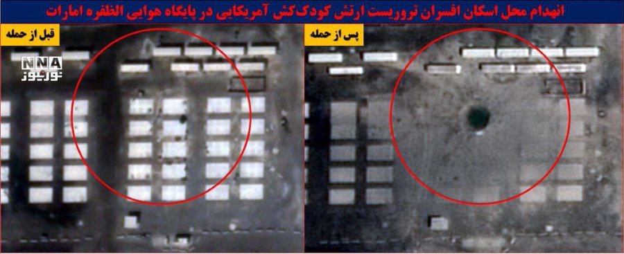 Ειδικότερα, μια εξαιρετικά ισχυρή πρόσκρουση της ιρανικής κεφαλής βαλλιστικού πυραύλου Khorramshahr-4 έπληξε την περιοχή διαμονής Αμερικανών αξιωματικών, η οποία δημιούργησε μια τρύπα διαμέτρου τουλάχιστον 10 μέτρων.