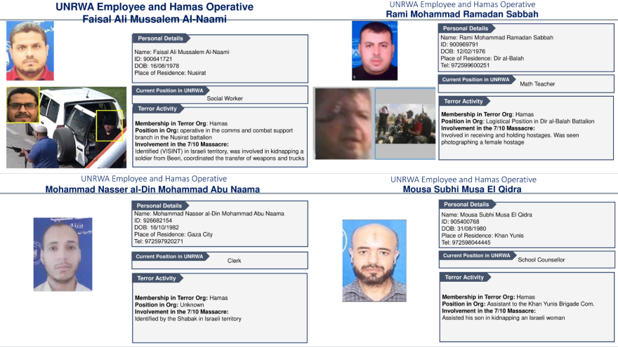 Ο υπουργός Άμυνας Γιοάβ Γκάλαντ έδωσε στο «φως» της δημοσιότητας τις ταυτότητες δώδεκα εργαζομένων της UNRWA, οι οποίοι, όπως λέει «συμμετείχαν ενεργά» στις επιθέσεις της 7ης Οκτωβρίου.