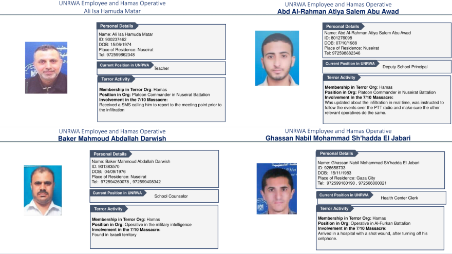 Ο υπουργός Άμυνας Γιοάβ Γκάλαντ έδωσε στο «φως» της δημοσιότητας τις ταυτότητες δώδεκα εργαζομένων της UNRWA, οι οποίοι, όπως λέει «συμμετείχαν ενεργά» στις επιθέσεις της 7ης Οκτωβρίου.