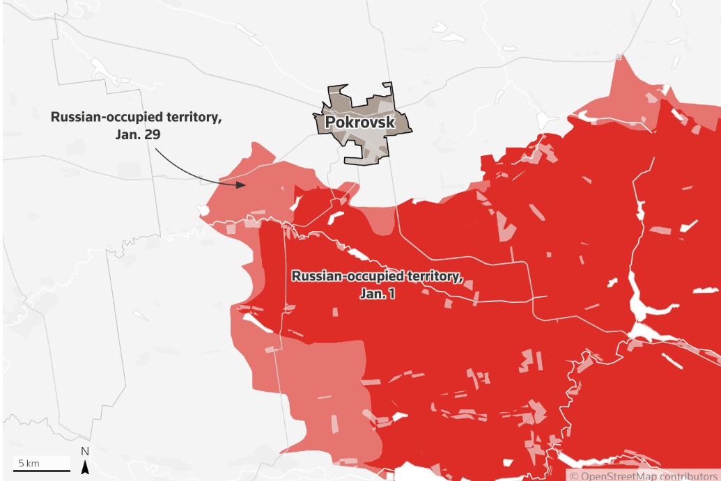 Οι ρωσικές δυνάμεις περικυκλώνουν σταδιακά το Ποκρόβσκ, το ζωτικής σημασίας ουκρανικό κέντρο υλικοτεχνικής υποστήριξης στα ανατολικά, απειλώντας να αποκόψουν κρίσιμες γραμμές ανεφοδιασμού καθώς ο πόλεμος πλησιάζει στον τρίτο χρόνο του, αναφέρει το Reuters.