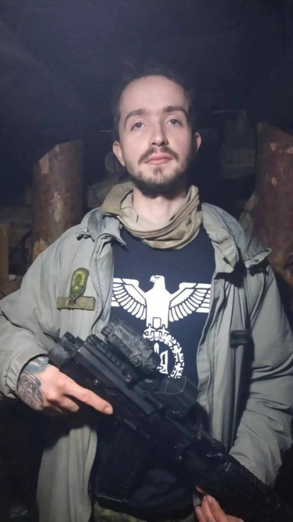 Ο ίδιος βρισκόταν στο ρωσοουκρανικό μέτωπο από την άνοιξη του 2024, μιλώντας συνεχώς μέσα από τις πλατφόρμες του telegram και του Χ, για μια «ιδεολογική μάχη κατά του κόκκινου φασισμού (σ.σ. εννοώντας τη Ρωσία)».