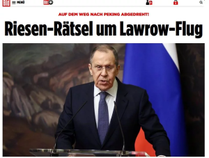 Η «Bild» διερωτάται κατά πόσον η αιφνίδια επιστροφή του Ρώσου υπουργού Εξωτερικών στη Μόσχα προμηνύει μια νέα κλιμάκωση από μέρους της Ρωσίας, ή μήπως το Πεκίνο δεν ήθελε να τον δεχθεί μετά τις αμερικανικές αιτιάσεις ότι η Μόσχα ζήτησε στρατιωτική και οικονομική βοήθεια από την Κίνα, η οποία καλύπτει μεν μέχρι στιγμής τον Πούτιν, αλλά δεν έχει υποστηρίξει ενεργά την επέμβαση στην Ουκρανία.