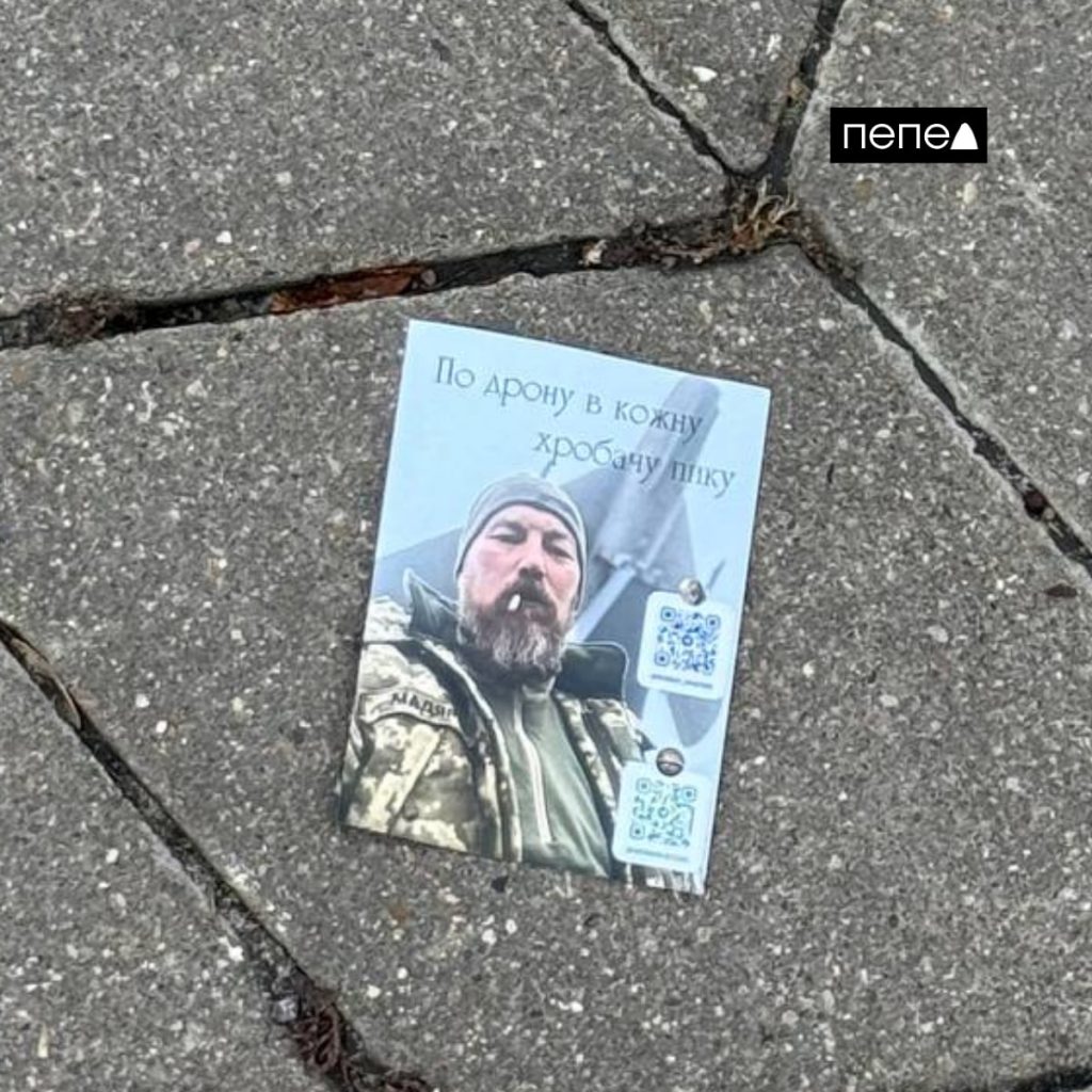 Συγκεκριμένα, ο Ρόμπερτ Μπρόβντι, με το παρωνύμιο «Μαντιάρ», απεικονίζεται ο ίδιος στα φυλλάδια αυτά, με την λεζάντα να γράφει στα ουκρανικά: «ένα drone για κάθε σκουλήκι».