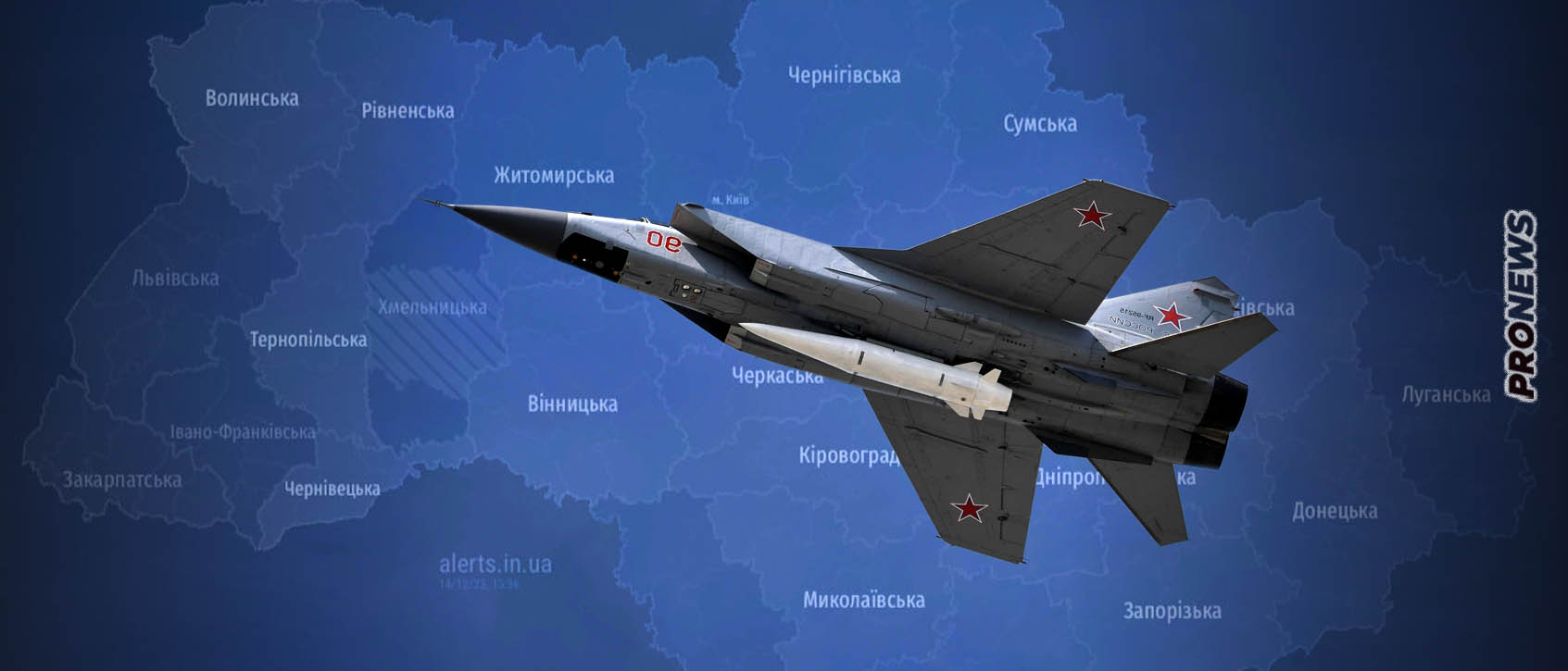 Σε μαζικές αποστολές προχώρησαν ρωσικά μαχητικά MiG-31 της Πέμπτης (14/12), τα οποία εκτόξευσαν υπέρ-υπερηχητικούς (10-12 Mach) πυραύλους αέρος-εδάφους Kinzhal κατά της ουκρανικής περιφέρειας Χμελνίτσκι στα δυτικά.