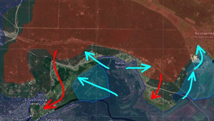 Κατά μήκος της βόρειας άκρης του δάσους και κατά μήκος του επαρχιακού δρόμου στον Σιβέρσκι Ντον στη γραμμή Σβιατογκόρσκ, Γιαρόβα, Νοβοσελίβκα, οι σφοδρές μάχες συνεχίζονται.