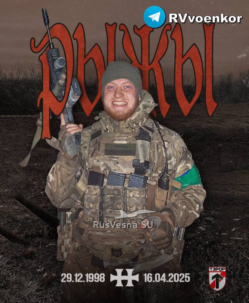 Ένας μαχητής του τάγματος «Τρομοκρατία» με το διακριτικό κλήσης στον ουκρανικό στρατό, εξοντώθηκε από ρωσικά στρατεύματα στις 16 Απριλίου.