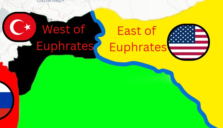 Η περιοχή ανατολικά του Ευφράτη «ανήκει» στις ΗΠΑ, η περιοχή δυτικά του στην Τουρκία.