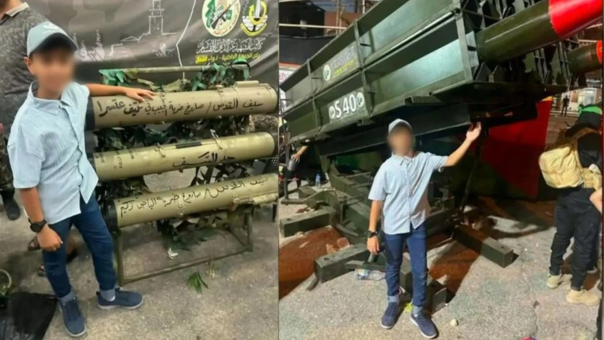 Οι Ισραηλινές Δυνάμεις Άμυνας (IDF) δημοσίευσαν την Τετάρτη φωτογραφίες που δείχνουν τα επίδοξα παιδιά-στρατιώτες να ποζάρουν δίπλα σε τρομοκράτες της Χαμάς, ενώ κρατούν ημιαυτόματα όπλα και επανδρώνουν εκτοξευτές ρουκετών.