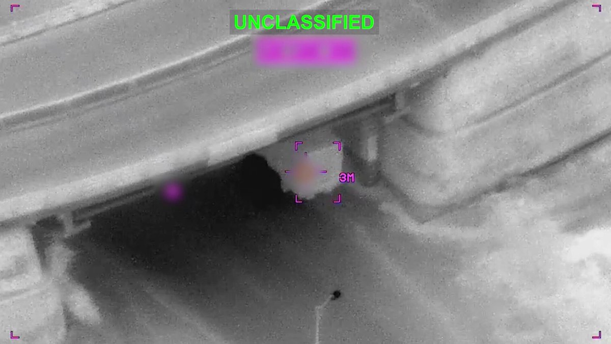 Το βίντεο δείχνει έναν εκτοξευτή πυραύλων κρυμμένο κάτω από μια κατασκευή που μοιάζει με γέφυρα πριν γίνει στόχος της επίθεσης.