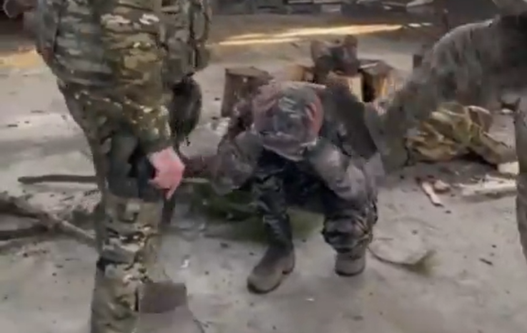 Στο παρακάτω βίντεο φαίνεται ένας Αμερικανός μισθοφόρος ο οποίος αιχμαλωτίστηκε από Ρώσους στρατιώτες, να είναι πεσμένος στο έδαφος και κρατώντας το κεφάλι του, να φωνάζει «Μην πυροβολείς».