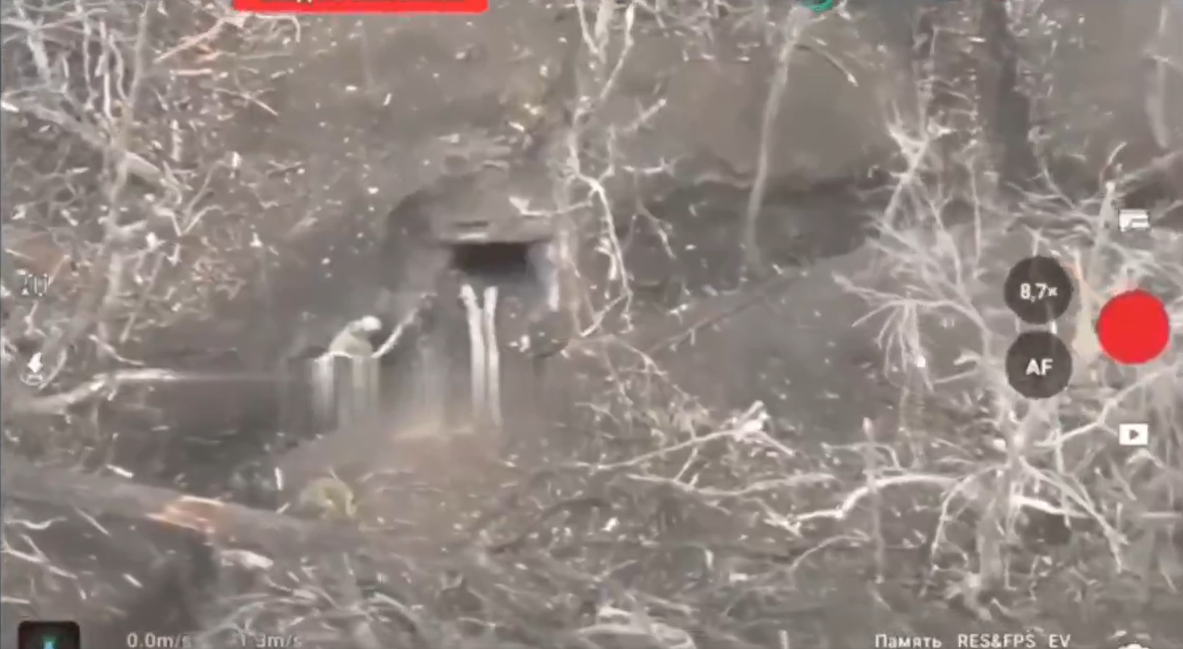 Βίντεο που ήρθε στη δημοσιότητα δείχνει τη στιγμή που Ρώσος στρατιώτης από το 1ο Terbat «Ghost» ρίχνει νάρκη TM-62 σε καταφύγιο Ουκρανών στρατιωτών.