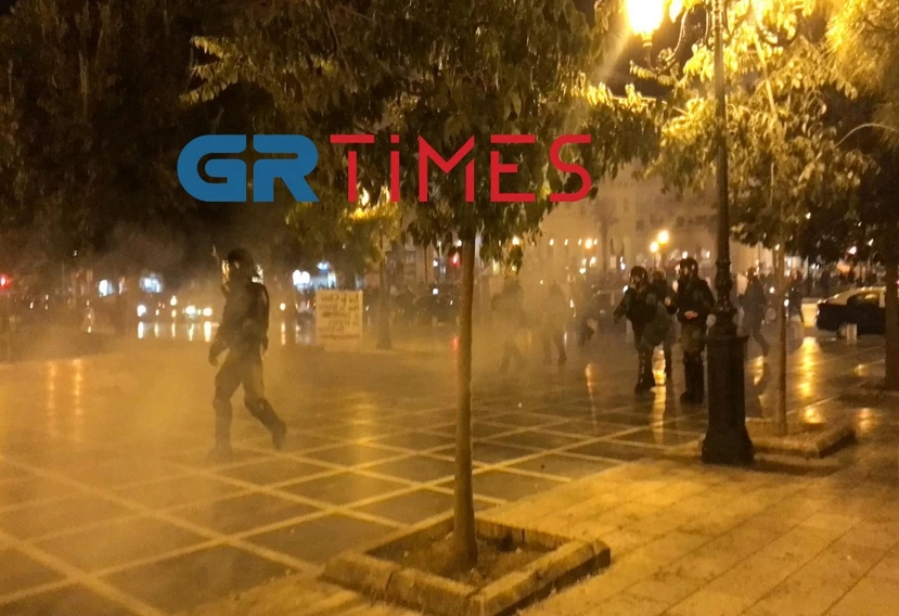 Επεισόδια ξέσπασαν μετά το τέλος της πορείας στο άγαλμα του Ε. Βενιζέλου στο κέντρο της Θεσσαλονίκης.