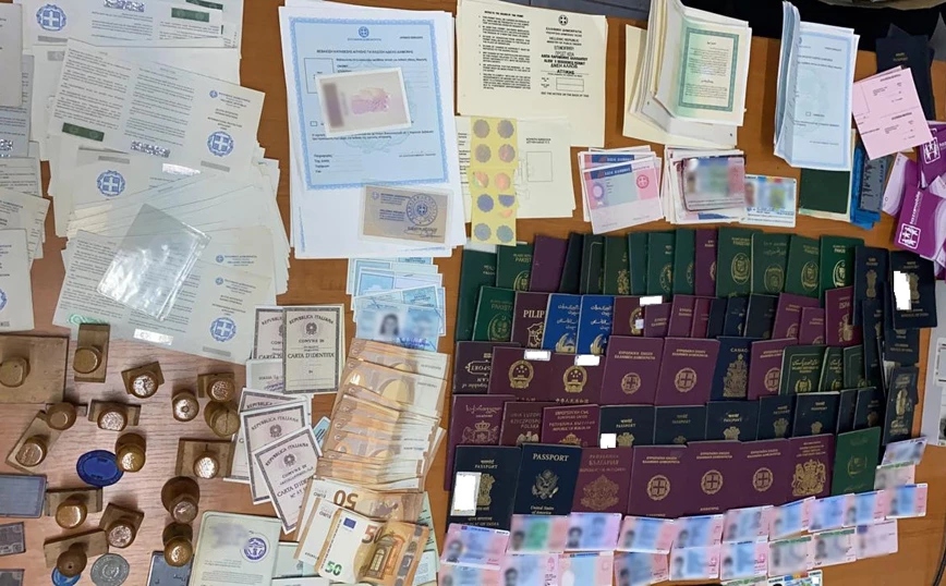 Σε έρευνες που ακολούθησαν, σε κατάστημα και διαμερίσματα που χρησιμοποιούσε ο 50χρονος, εντοπίσθηκε ένα πλήρως εξοπλισμένο εργαστήριο κατάρτισης πλαστών εγγράφων και πλήθος πλαστών εγγράφων.
