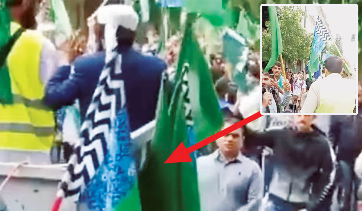Σαν να μην έφτανε αυτό οι Πακιστανοί ύψωσαν κατά τη διάρκεια της πορείας τους στο κέντρο της Αθήνας σημαία-σύμβολο των τζιχαντιστών.