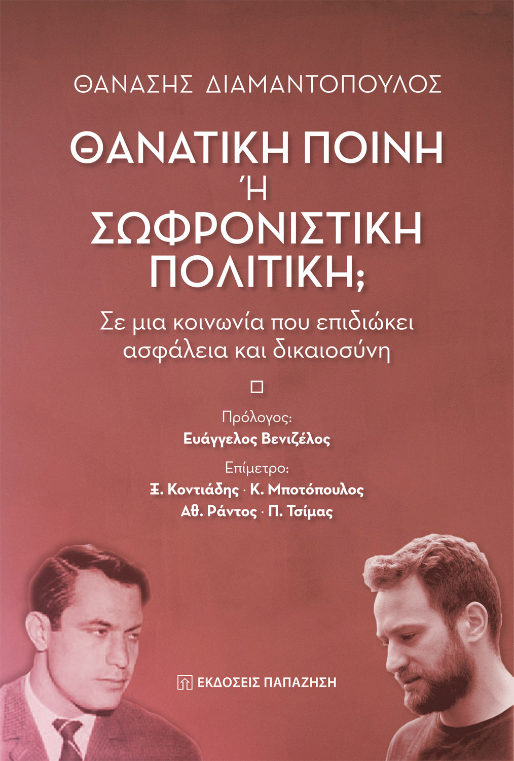 Σημειώνεται πως το βιβλίο είναι του Θανάση Διαμαντόπουλου και τιτλοφορείται: «Θανατική ποινή ή Σωφρονιστική πολιτική σε μία κοινωνία που επιδιώκει ασφάλεια και δικαιοσύνη».