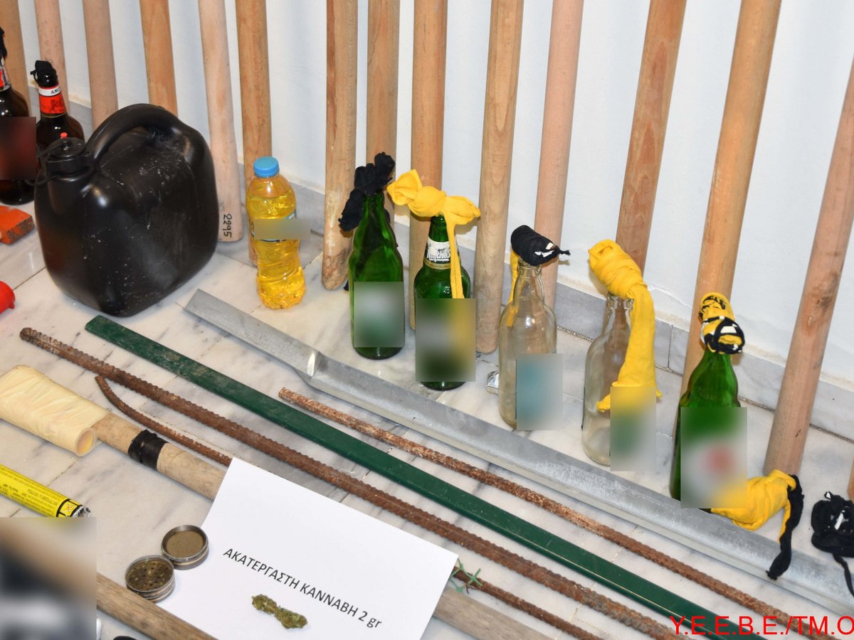Συγκεκριμένα, σε δύο συνδέσμους του ΠΑΟΚ και σε έναν του ‘Αρη σε περιοχές του Ευόσμου και της Σταυρούπολης, εντόπισαν και κατάσχεσαν αυτοσχέδιους εμπρηστικούς μηχανισμούς, μπιτόνια με βενζίνη και γυάλινες φιάλες, πολλά ξύλινα και μεταλλικά αντικείμενα, μαχαίρια, τσεκούρι, σφυρί και φτυάρι, πυροτεχνικές κατασκευές κ.α..