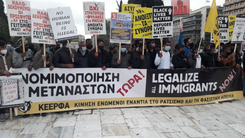 Μεγάλη συγκέντρωση στο Σύνταγμα πραγματοποίησαν χθες, Κυριακή, παράνομοι μετανάστες, μαζί με διάφορες άλλες οργανώσεις, οι οποίοι ζητούσαν από την κυβέρνηση να νομιμοποιήσει τους παράνομους μετανάστες.