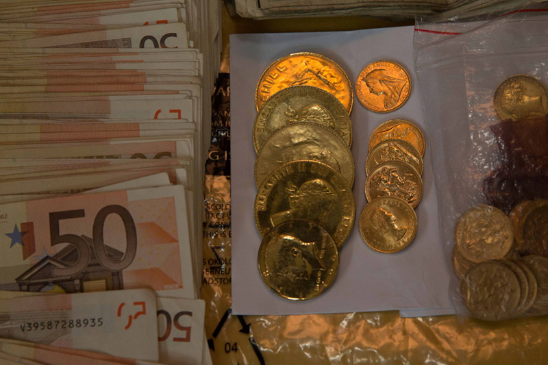 Πάνω από 600.000 ευρώ σε μετρητά, 120 κιλά ασημιού σε ράβδους, φύλλα χρυσού, χρυσές λίρες, πλήθος χρυσαφικών – κοσμημάτων μεγάλης αξίας και περισσότερα από 60 πολυτελή οχήματα κατάσχεσε η Ελληνική Αστυνομία μετά την εξάρθρωση της σπείρας.