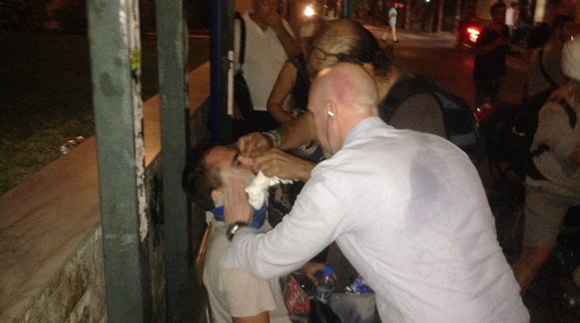 Ο Χρήστος Μαζανίτης δέχθηκε γροθιές στο κεφάλι, ο Αλέξης Πονσέ γροθιές και κλωτσιές, ενώ ο Θωμάς Μελέτης χτυπήθηκε στο πρόσωπο, τα πλευρά και το κεφάλι και μεταφέρθηκε στο νοσοκομείο «Ευαγγελισμός»