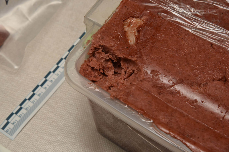 – δοχείο, βάρους 8830 γραμμαρίων, με άγνωστη στερεή ουσία, πιθανώς ζελατινοδυναμίτιδα,