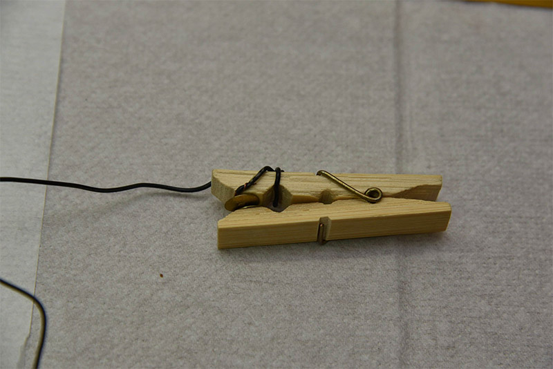 – 2 ξύλινα μανταλάκια, στο σημείο κλεισίματος των οποίων υπήρχαν προσαρμοσμένες 2 μεταλλικές πινέζες,