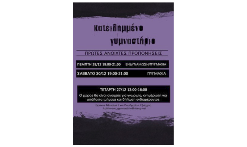 Μάλιστα σύμφωνα με την αφίσα τους στις 28 Δεκεμβρίου θα πραγματοποιηθεί η πρώτη προπόνηση στο οίκημα το οποίο τελεί υπό κατάληψη.