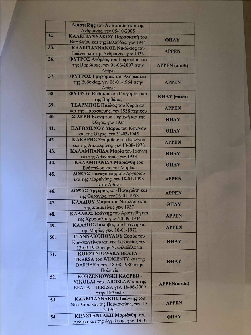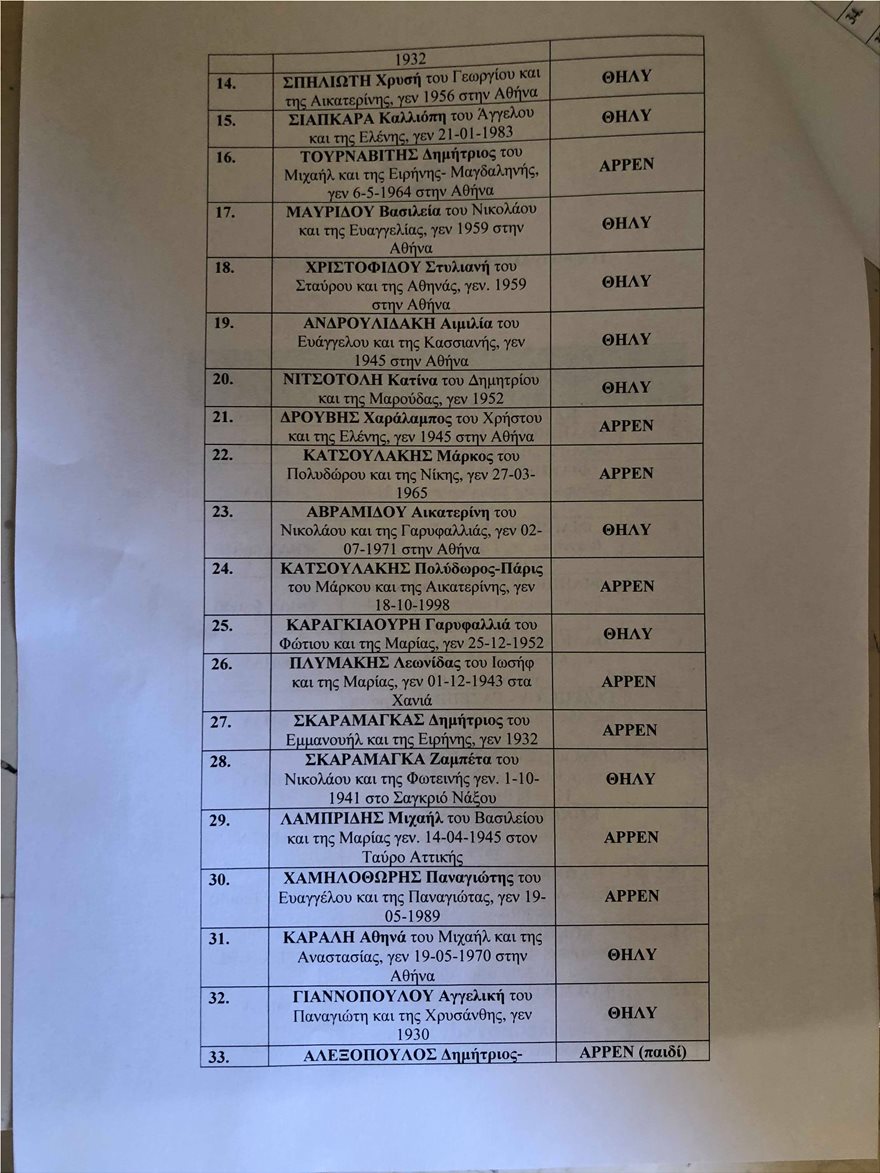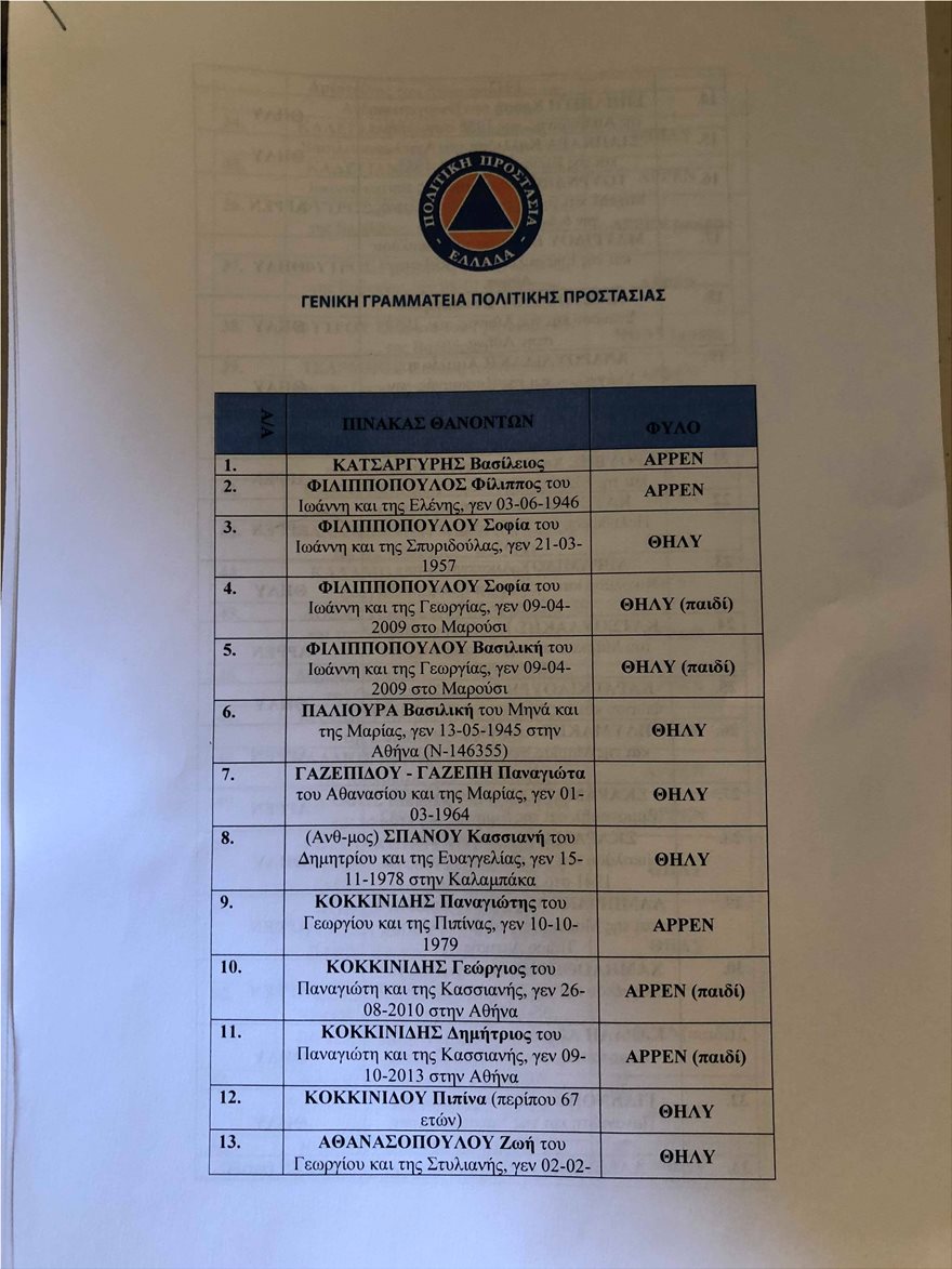 O κατάλογος με τα ονόματα των θυμάτων βρίσκεται και στη Γενική Γραμματεία Πολιτικής Προστασίας και όσοι επιθυμούν να λάβουν γνώση του, μπορούν να υποβάλουν σχετική αίτηση.