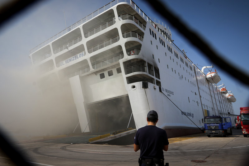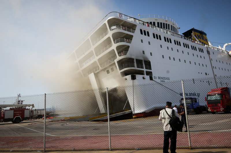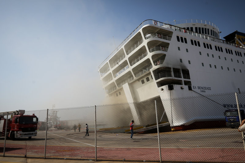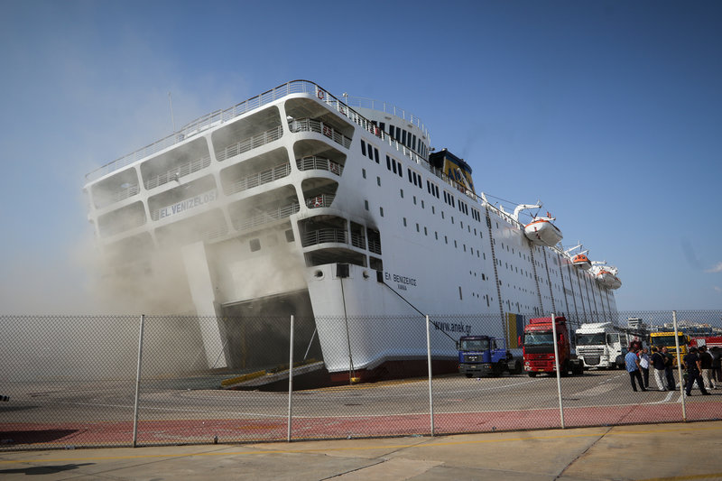 Μεγάλη κλίση έχει πάρει το πλοίο «Ελευθέριος Βενιζέλος», μετά τη φωτιά που ξέσπασε χθες τη νύχτα στο υπόγειο γκαράζ.