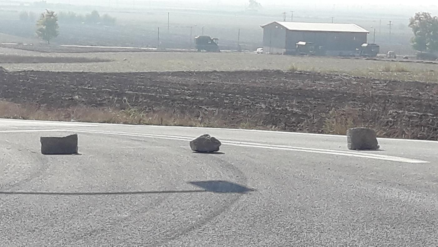 Σύμφωνα με αυτόπτες μάρτυρες και σχετικές φωτογραφίες, ένα φορτηγό δέχθηκε πέτρες στην προσπάθειά του να περάσει.