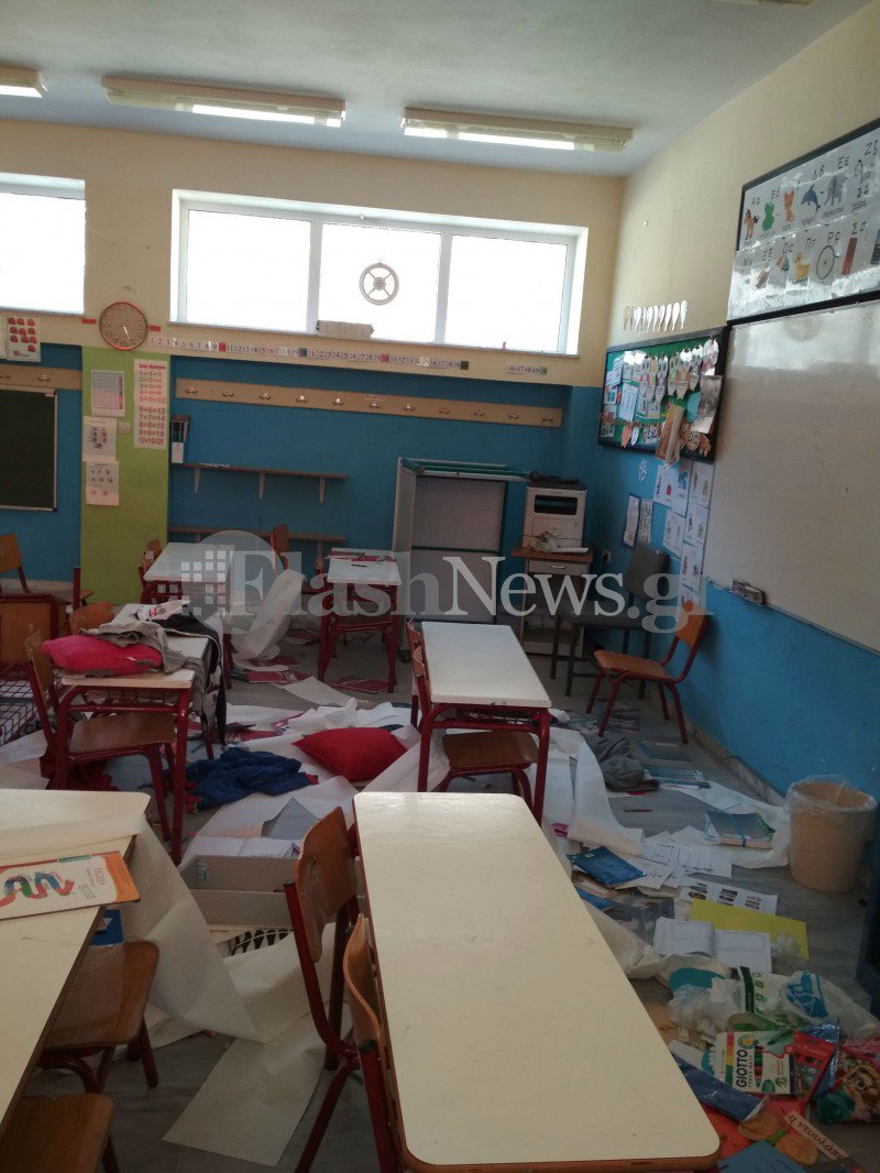 Σύμφωνα με πληροφορίες, οι άγνωστοι μπήκαν χθες το βράδυ στο σχολείο και όχι μόνο διέρρηξαν τις πόρτες δύο αιθουσών, αλλά κατέστρεψαν βιβλία και γραφική ύλη ενώ έριξαν χαρτιά, νερό και αλεύρι στο πάτωμα.