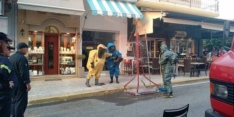 Στο χρυσοχοείο, σύμφωνα με την τοπική εφημερίδα «Ελευθερία», έφτασαν άνδρες της EMAK Πατρών και της Αστυνομίας που απέκλεισαν την περιοχή, και με τη σειρά τους ζήτησαν τη συνδρομή ειδικών της Ομάδας Αντιμετώπισης Ραδιοβιοχημικών Απειλών από την Αθήνα.
