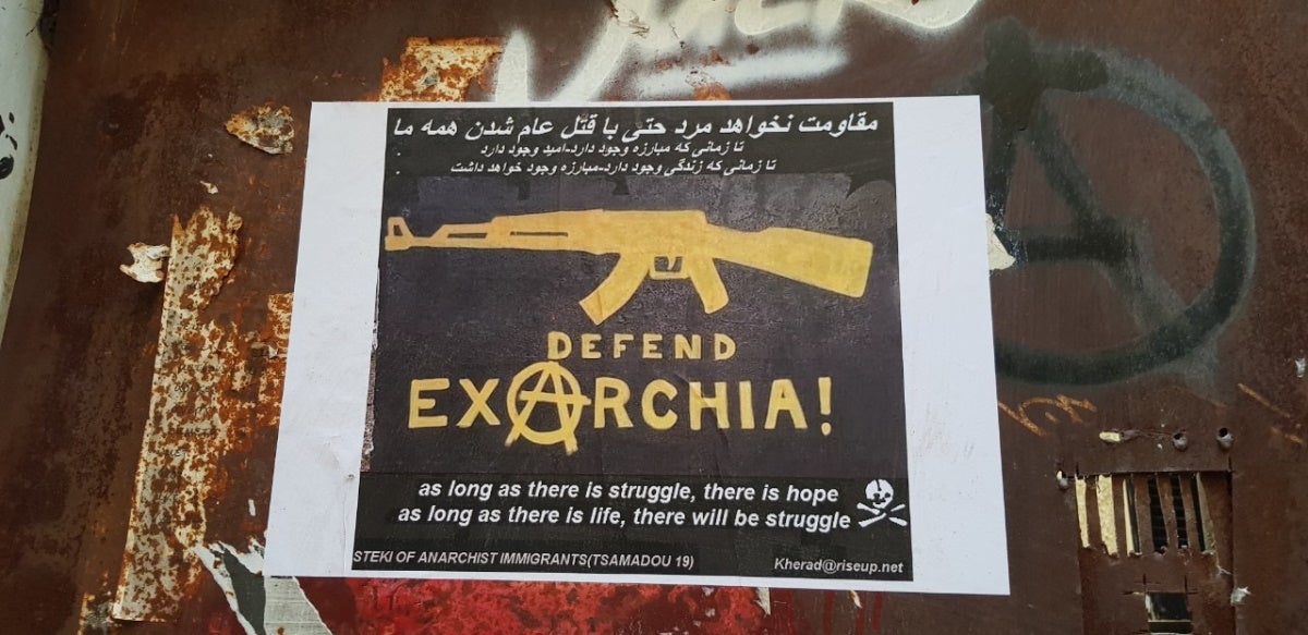 Είναι χαρακτηριστική η φωτογραφία που φαίνεται οι «αναρχικοί» μετανάστες να καλούν σε… άμυνα των Εξαρχείων. Μάλιστα στη φωτογραφία φαίνεται η αφίσα που έχουν κολλήσει στην οδό Νοταρά έχοντας βάλει και ένα Καλάσνικοφ, με την αφίσα να έχει φράσεις στα αραβικά και αγγλικά πλην ελληνικών (φυσικά).