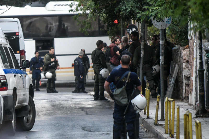 Στο πρώην 5ο Λύκειο Αθηνών, είχαν φτάσει ισχυρές αστυνομικές δυνάμεις (ΜΑΤ, ΟΠΚΕ, κρατική ασφάλεια), καθώς και 4 πούλμαν προκειμένου να μεταφέρουν τους πρόσφυγες και μετανάστες στη διεύθυνση αλλοδαπών, ώστε να γίνει εξακρίβωση στοιχείων.