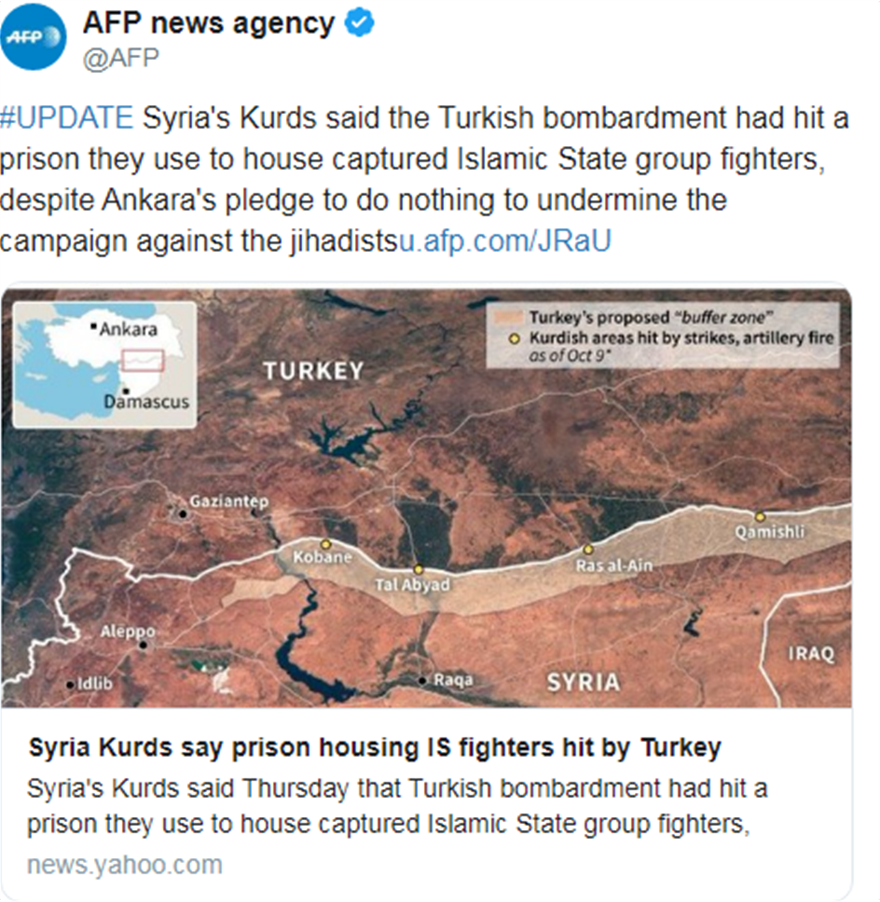 Το τραγικό παζλ της τουρκικής στρατιωτικής επιχείρησης στη Συρία συνθέτουν τα γεγονότα αυτά που δημιουργούν παγκόσμια ανησυχία και κατακραυγή, σε μια εποχή που έχει μειωθεί σημαντικά η δύναμη της ISIS, στη Συρία, καθώς στην Ευρώπη το δίκτυο βρίσκεται σε ανάπτυξη.