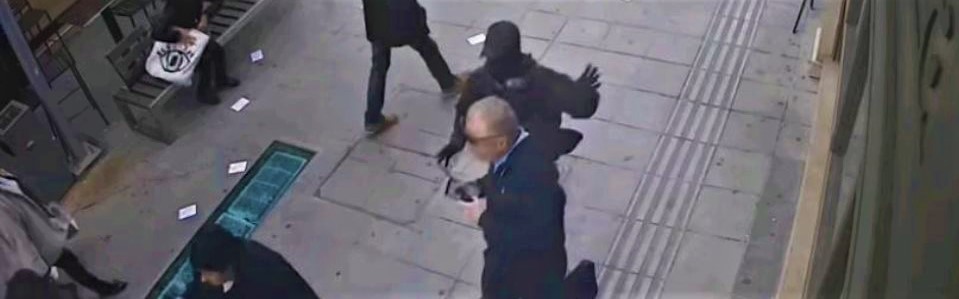 Σε βίντεο από κάμερα ασφαλείας επίσης, διακρίνεται ένα «σκουπίδι» να τρέχει να χτυπήσει έναν ηλικιωμένο ο οποίος τρομαγμένος προσπαθεί να ξεφύγει.