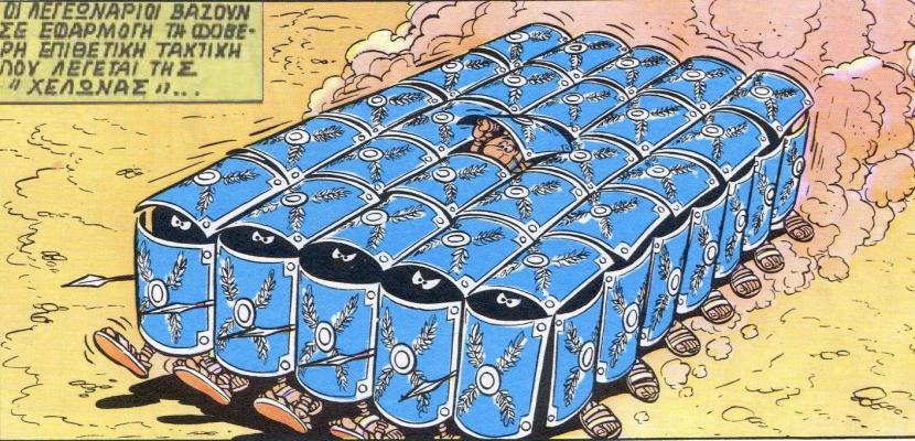 Πραγματικά θύμιζε τη διάταξη… χελώνας των Ρωμαίων όταν προσπαθούσαν να τα βάλουν με τους γενναίους Γαλάτες!