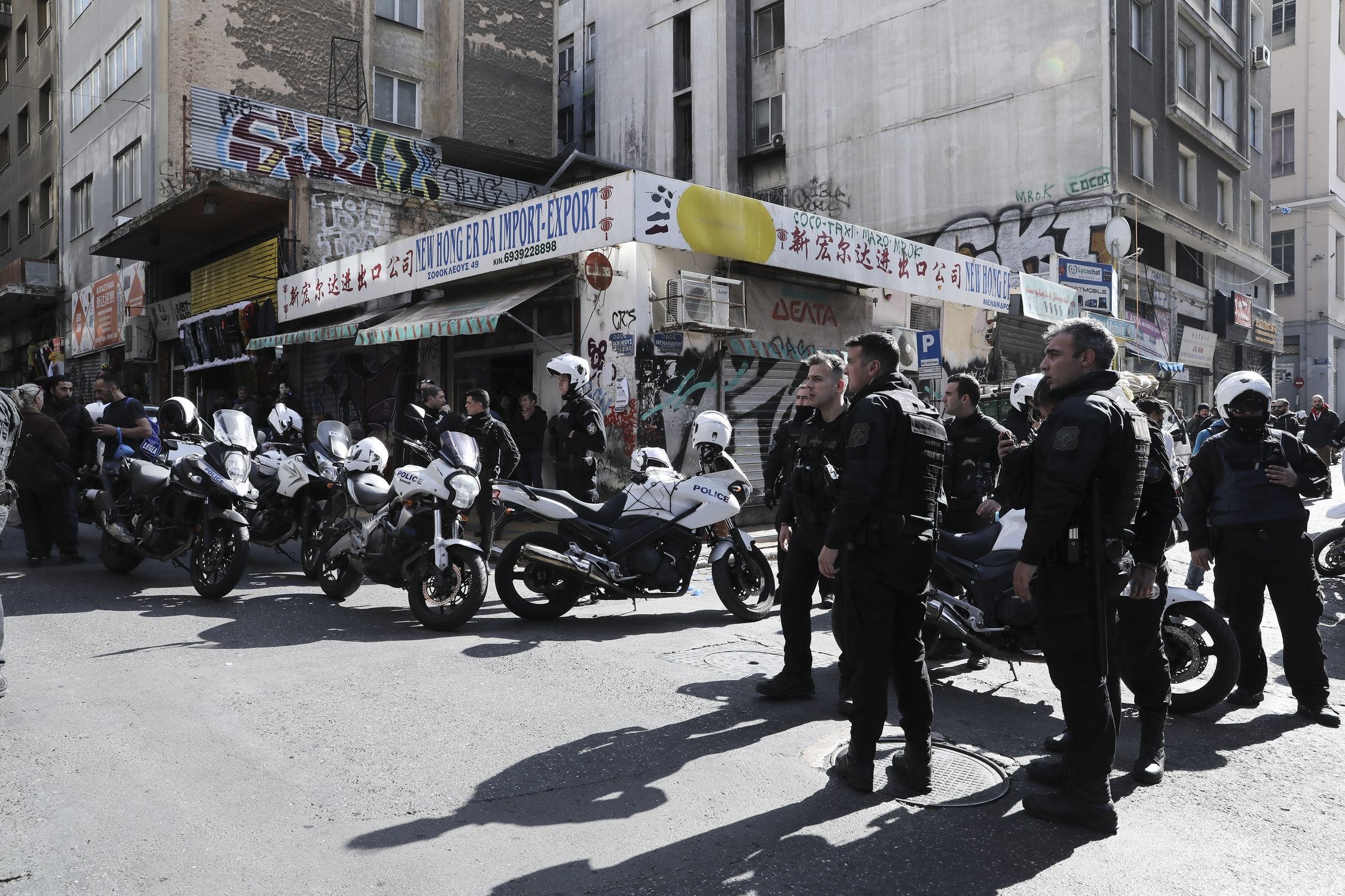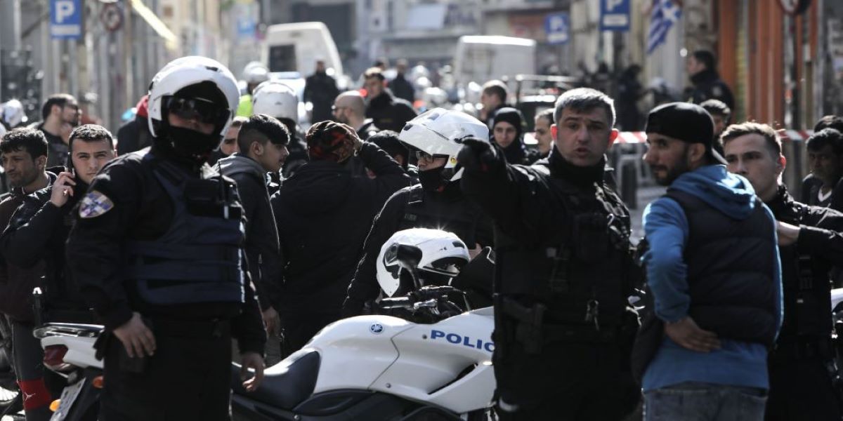Η αστυνομία απέκλεισε την περιοχή όπου σημειώθηκε η άγρια συμπλοκή με έναν νεκρό μεταξύ αλλοδαπών μέρα μεσημέρι στο κέντρο της Αθήνας, στην περιοχή της Ομόνοιας.