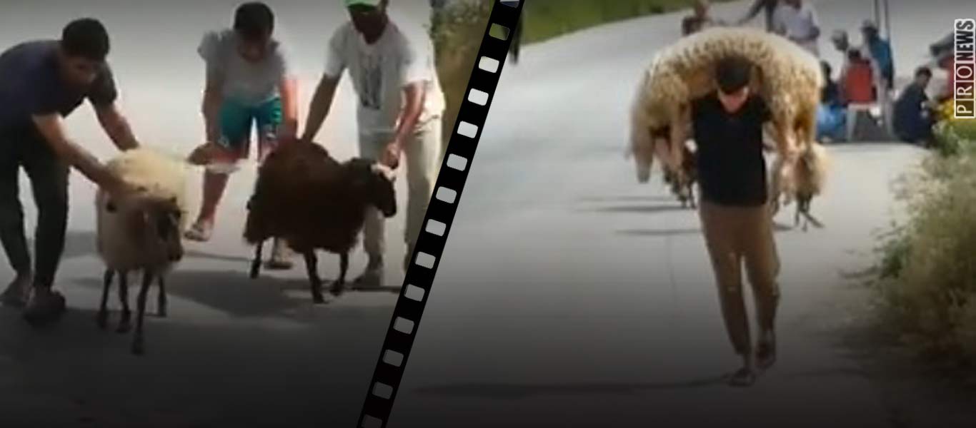 Όπως φαίνεται, οι παράνομοι μετανάστες κουβαλούν κυριολεκτικά στην πλάτη πρόβατα που προφανώς έχουν κλέψει από κάποια κτηνοτροφική μονάδα στο κέντρο υποδοχής, ενώ ένας άλλος έχει κλέψει δυο πρόβατα τα οποία οδηγεί στο ίδιο μέρος.