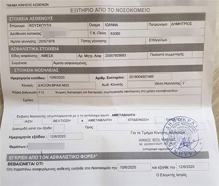 Εξιτήριο πήρε πριν από λίγο από το Ψυχιατρικό Νοσοκομείο Θεσσαλονίκης η παρουσιάστρια Ιωάννα Κουσκούση, η οποία είχε «μπουγελώσει» τον Νίκο Χαρδαλιά, αφού ήταν απολύτως καλά στα λογικά της, κάτι που δημιουργεί ερωτήματα για ποιον λόγο διατάχθηκε ο ακούσιος εγκλεισμός της.