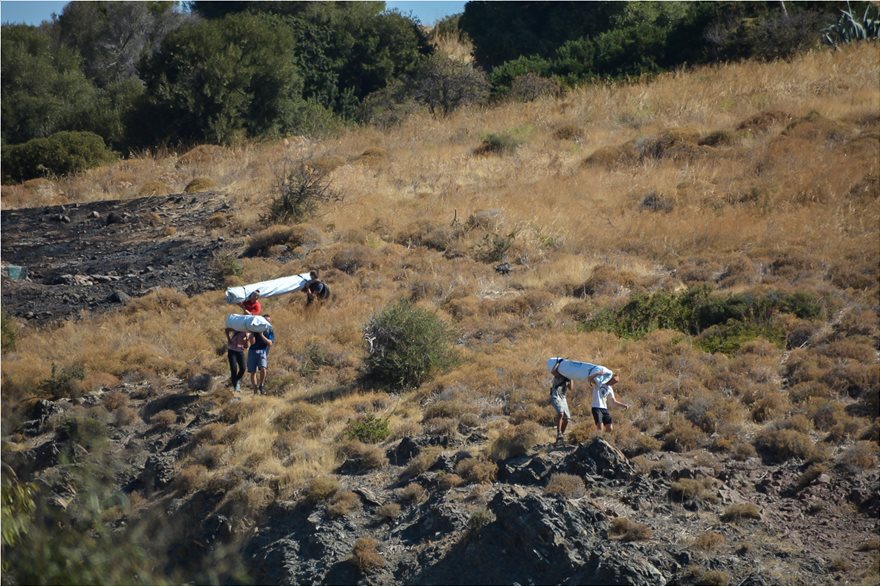 Φωτογραφίες από την eurokinissi δείχνουν ότι μεταφέρονται με ελικόπτερο σκηνές για να αρχίσει το στήσιμο του καταυλισμού, εν μέσω στρατιωτικών εγκαταστάσεων!