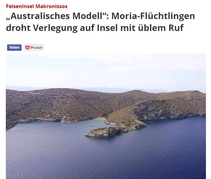 Το δημοσίευμα του περιοδικού είναι: «’Αυστραλιανό μοντέλο’: Οι “πρόσφυγες” της Μόριας απειλούνται με μετεγκατάσταση σε ένα νησί με κακή φήμη».